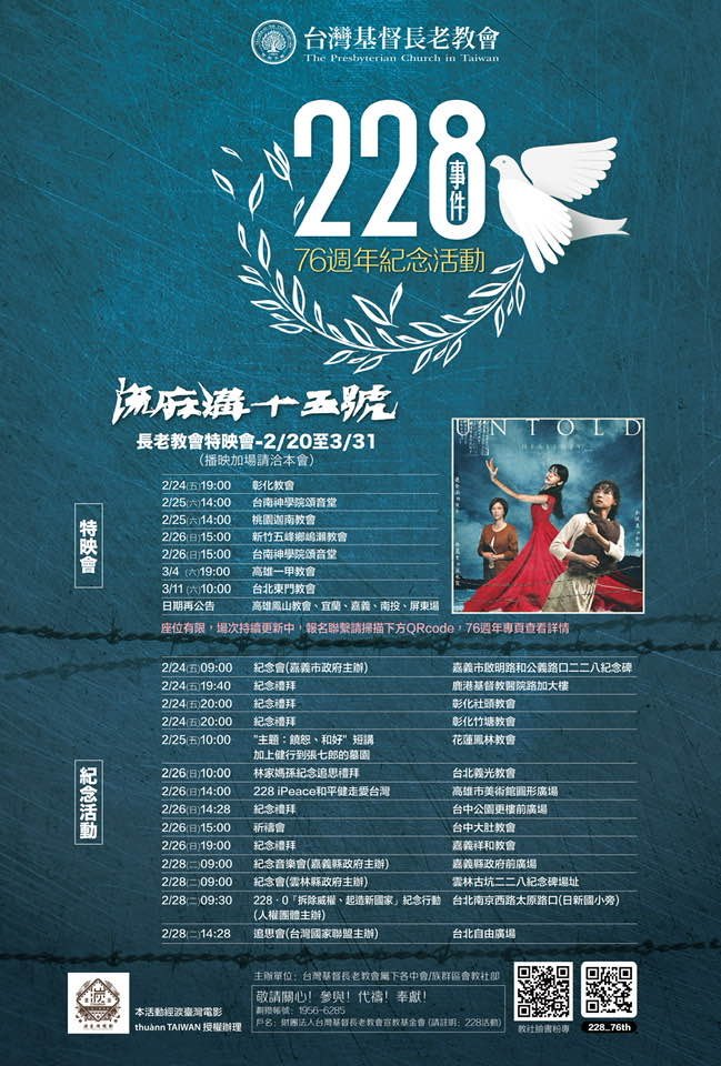 活動回顧二二八紀念活動:台灣基督長老教會 2023/02/142023/03/11 台灣基督長老教會 二二八紀念活動:台灣基督長老教會 台灣基督長老教會 張炎憲老師〈春陽〉手稿與二二八 二二八紀念活動:好民文化行動協會