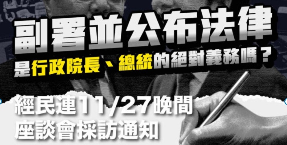 【副署並公布法律是行政院長、總統的絕對義務嗎?】/經民連11/27晚上座談會採訪通知