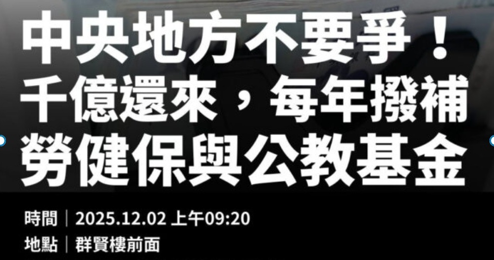 財劃法,中央地方不要爭!千億還來,撥補四大社福缺口!/12/2上午經民連、台灣基進、時代力量、綠黨、小歐盟聯合記者會採訪通知