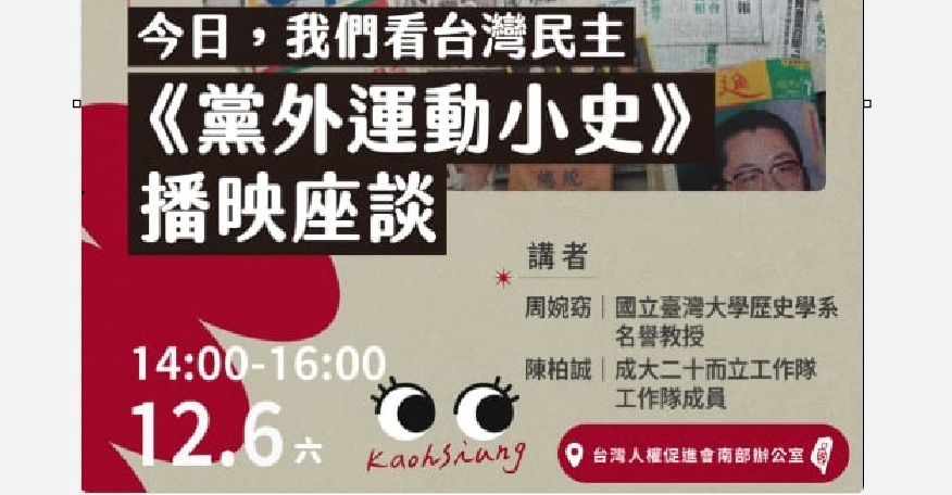 活 動 │ 今日,我們看台灣民主:《黨外運動小史》播映座談