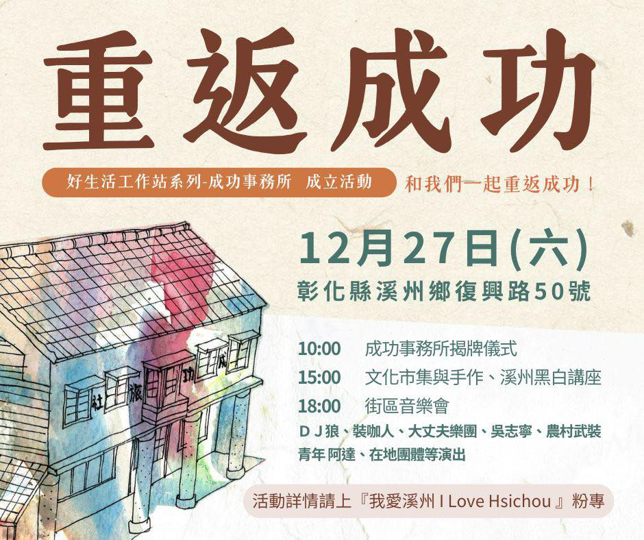 如今,這段緣分再度展開——我們將在這棟百年旅社裡成立 「成功事務所」,以實際的據點陪伴鄉親,協助地方解決問題,帶著溪州