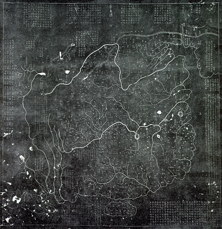 現存最早的中國全圖,可能是西元 1136 年的石刻《華夷圖》與《禹跡圖》。上圖即為《華夷圖》,清楚描繪河川、海岸、長城與地名。從地圖的方位與比例尺來看,當時中國的地圖測繪技術領先西方。不過,《華夷圖》只繪出海南島,沒有繪出臺灣島。有一種可能是,宋人不知道臺灣。另一種可能是,宋人認為臺灣不屬於中華,所以不用畫出來。