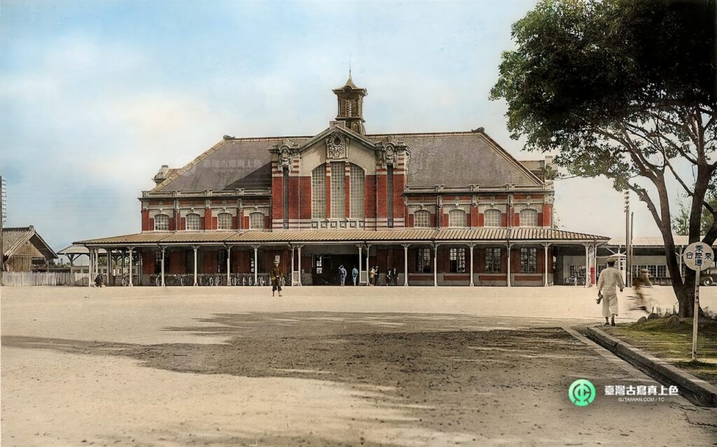 第一代臺中車站在1905年設站,採用簡易的木造站房。到了1908年重要的縱貫鐵道全通式後,1910年實施都市規劃,並在1917年建立圖中的第二代站房。外觀除了顯眼的中央鐘塔外,站體採紅磚牆、數條白色「洗石子」環帶,點綴著勳章與浮雕裝飾的「辰野式」紅磚造建築,令人印象深刻。 這座美麗的車站站體至今尚存,來到臺中別忘了前去看看!