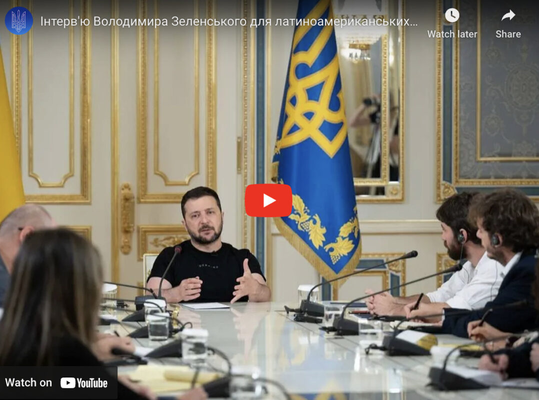 每日慣常閱讀烏克蘭地方報紙,今早發現貼出澤連斯基接受了拉美國家媒體的聯合訪問影音,好奇拉美媒體人都為拉美讀者或觀眾問了哪些問題,就點開來聽,一聽,竟像著魔似地全程聽完。澤連斯基一如往常,回答靈動,很有實質內容。