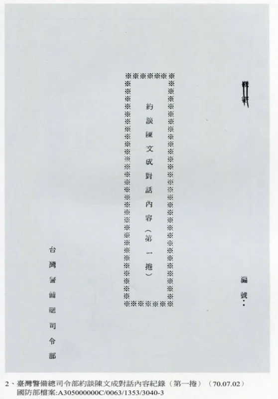 國史館和國家人權博物館2019年12月出版《陳文成案史料彙編》,因此我們得以看到警總內部資料,也就是陳文成被偵訊的錄音帶錄文(圖二),全不全無法確定,但它至少讓我們知道:1、陳文成在海外和回國後,都受到嚴密的監控。連和小學同學吃飯,談話內容都紀錄在案。(監控的程度見圖三)。2、陳文成從沒主動講什麼,都是偵訊人鄒小韓上校資料「揭露」到哪裡,才「進展」到哪裡。(這是否惹惱特務?)3、陳文成在特務的威脅之下,壓力那麼大,他沒多講出什麼,沒牽連任何人。4、在偵訊中他始終堅持:「我是希望台灣進步」(圖四)、「我個人主張的『政治民主』是採取『兩黨政治』」(圖五)。