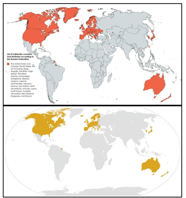 其次,是關於從雙邊延伸三邊帶來的責信(accountability)議題。三邊計畫多是由臺灣外交部直接撥款給OECD會員國的同儕們執行,其中一些執行所在地甚至沒有臺灣代表處,因此臺灣政府如何從制度上避免道德風險,從而落實責信,值得後續研究。這邊進一步會延伸出來的是與OECD援助國靠得太近而可能喪失的政策空間。最明顯的案例是2022年2月俄羅斯入侵烏克蘭之後受到多個國家制裁,俄國則將這些國家列入「 不友善國家清單( Unfriendly Countries List )」 。 清單的 48 國之中, OECD 發展援助委員會的會員國 (包含有會員身份的歐盟的會員國)全數在列,剩餘的除了 8 個歐盟鄰國(包含烏克蘭)之外,就剩臺灣、新加坡和密克羅尼西亞。這兩份高度相似的清單 (如圖一) ,進一步顯示了臺灣緊密追隨 OECD 的不僅是援助典則,還包含更大的地緣戰略和普世價值的呼應。臺灣為此在短期之內付出一定的代價(例如對俄貿易的中斷),長期而言也可能因為與「北方俱樂部」關係緊密, 從而進一步壓縮臺灣與一些南方國家交往的政策迴旋空間(例如巴勒斯坦、伊朗或古巴等)。