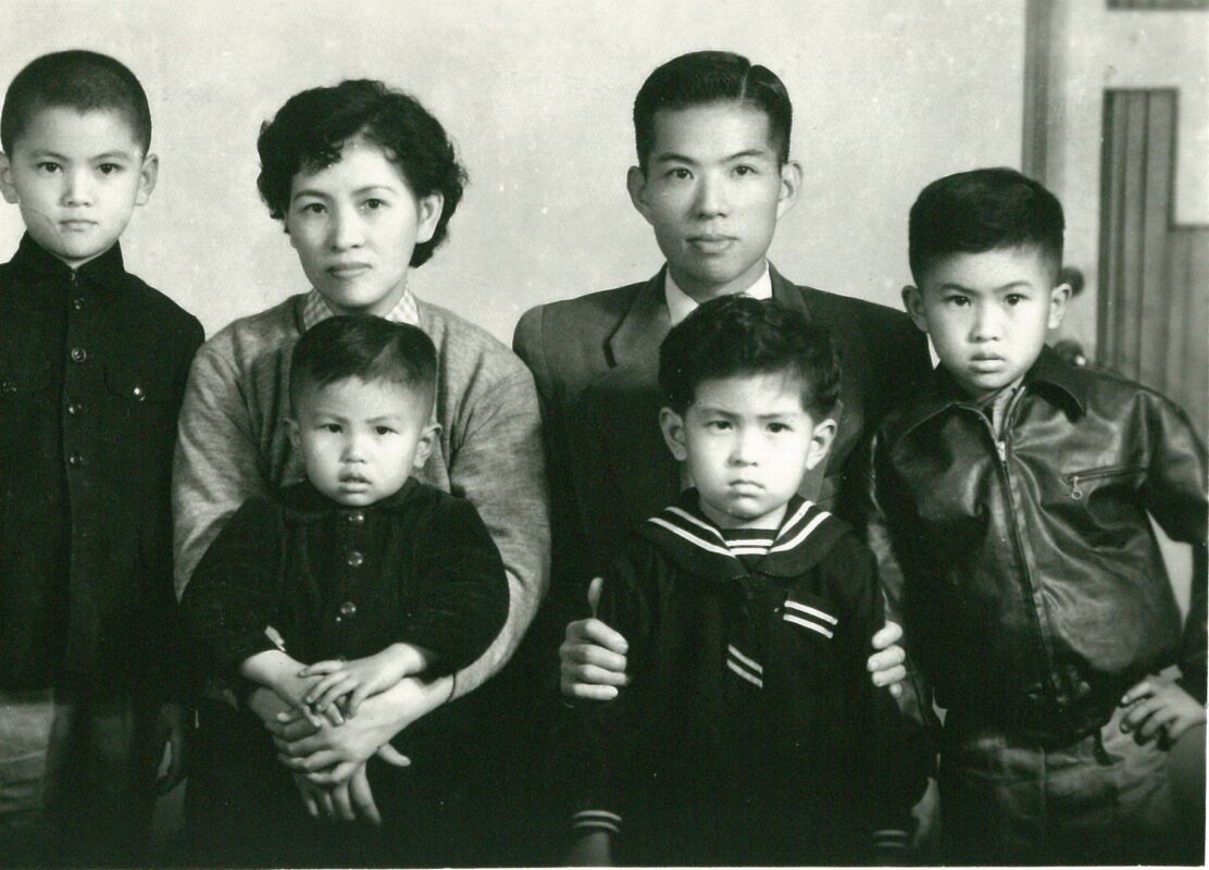 第二排,鄭南榕、母親謝惠琛 、父親鄭木森。