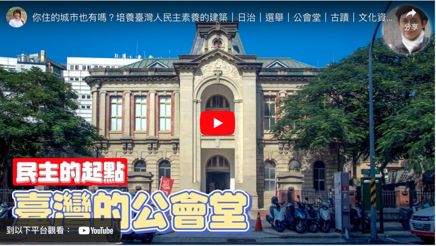 台灣歷史, 日治時期, 短片劇場你住的城市也有嗎?培養臺灣人民主素養的建築 2024/01/05 凌宗魁 你住的城市也有嗎?培養臺灣人民主素養的建築 凌宗魁 歡迎來到凌宗魁聊建築,把人聚集在一個特定場所,進行各種事務的討論,是民主制度的基礎。日本時代臺灣各地廣設公會堂,提供地方重要的市民社會發展條件,今天就來和大家聊聊公會堂建築。 00:00 開場 00:26 民主社會的起點 02:55 百花齊放的建築風格 (影片轉載自:凌宗魁聊建築 2024/1/4 影片) 凌宗魁 博物館員,建築史與文化資產研究工作者,致力尋找各種藝術載體中的台灣建築故事。 臉書:https://www.facebook.com/PRHA1008 被玻璃棺材封印的臺灣第一家百貨公司 和史明歐吉桑一起包潤餅做地下工作