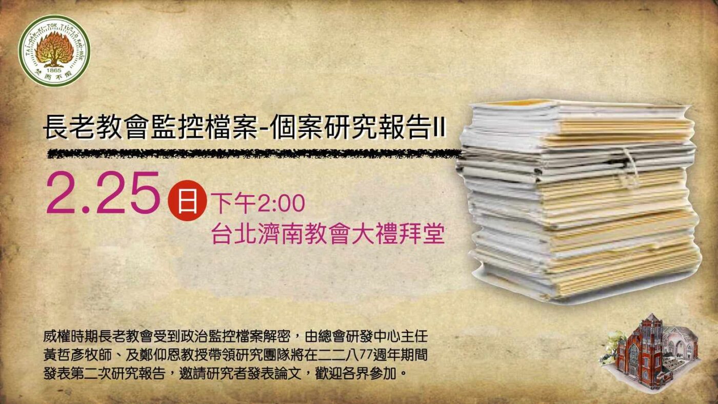 活動回顧⭕長老教會監控檔案-個案研究報告II 2024/02/082024/03/15 台灣放送 ⭕長老教會監控檔案-個案研究報告II 威權時期長老教會受到政治監控檔案解密,由總會研發中心主任黃哲彥牧師、及鄭仰恩教授帶領研究團隊將在二二八77週年期間發表第二次研究報告,邀請研究者發表論文,歡迎各界參加。 ❖ 時間:2/25(日)下午2:00 ❖ 地點:濟南教會大禮拜堂 台灣放送 「台灣放送」是台灣民主防衛聯盟的網站,以推廣歷史知識、深化公民教育為宗旨,目的在提供國人較為周全的資訊,以了解台灣的過去,面對當代問題,為建立穩固、自由民主不退轉的國家備好道路。 2024/2/1「我們拒絕中國的選擇」立法院行動:個人筆記、照片與影音 台大教授「被理髮」記——李永熾教授與王文興教授的故事