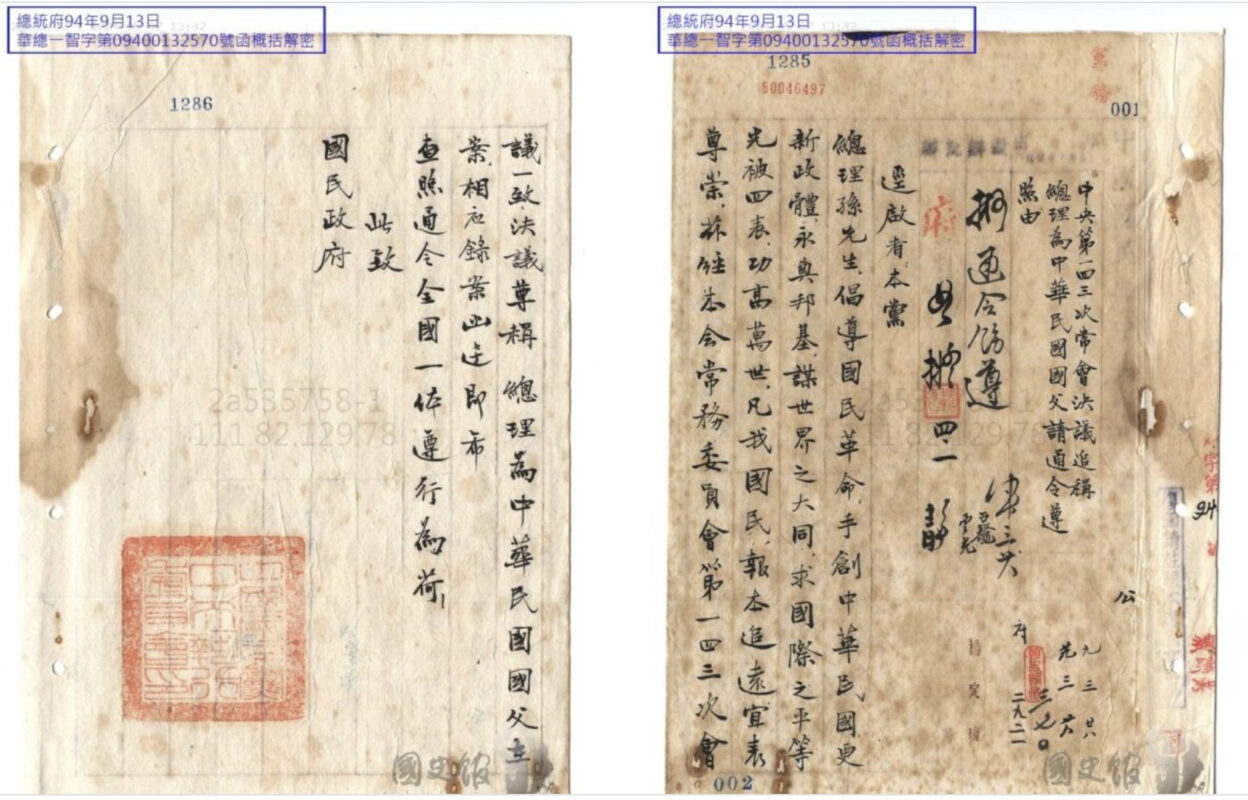 圖一 出處:〈尊稱總理為中華民國國父案〉,《國民政府》,國史館藏,數位典藏號:001-016500-00001-001