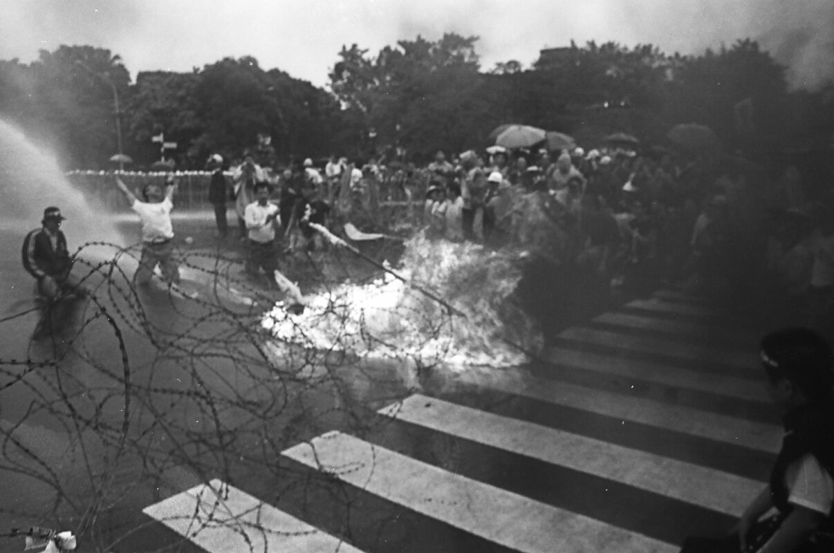 1987年6月11日,台灣仍在戒嚴時期,江蓋世舉著「台灣人民有主張台灣獨立的自由」走上街頭,直接挑戰蔣經國的「進軍士林官邸」非暴力示威遊行。詹益樺與周柏雅輪流扛著音箱,由立法院出發,他們朝士林官邸挺進,一路遭到鎮暴部隊阻擋,展開長達4小時的示威遊行,創下戒嚴時期示威遊行時間最久、距離最遠的紀錄。詹益樺就這樣單手扛起音箱,一路走到底,他堅毅向前的步伐,毫無畏懼。