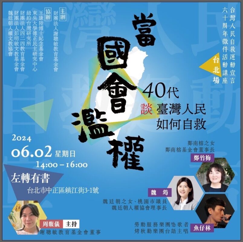 6/2自救宣言徵件宣傳講座台北場:【當國會濫權:「40代」談台灣人民如何自救】