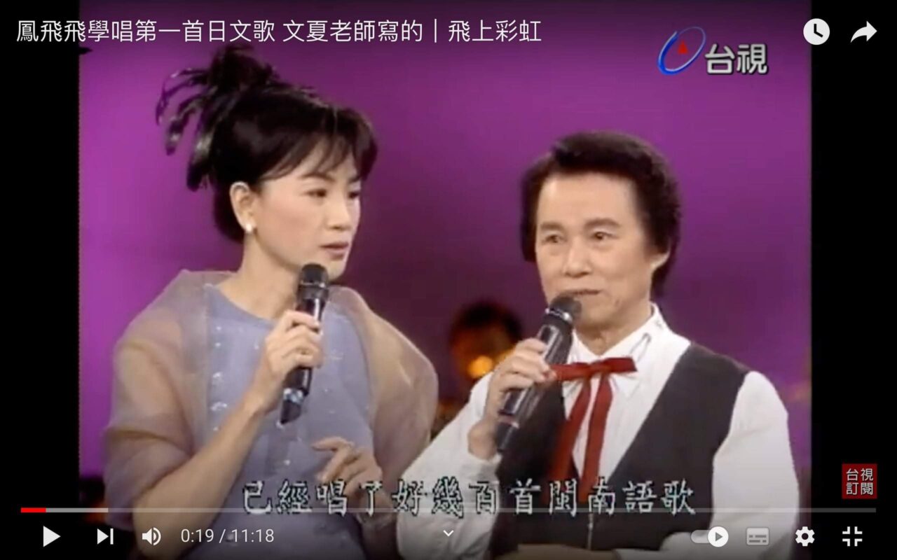 附圖:影片中文夏說「台灣歌」,字幕打出卻是「閩南語歌」。(節目時間:1997年5月18日)