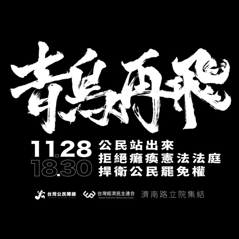 為了捍衛台灣的民主,11月28日晚上六點半,讓我們再次站出來,「下班、下課,立院集結」。讓我們向隔天要開會的立委大聲喊出:拒絕癱瘓憲法法庭!捍衛公民罷免權!