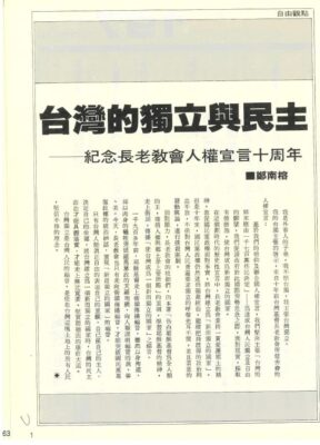 鄭南榕與「台灣基督教長老教會人權宣言」(1977年8月16日) 王韶君 資料來源:鄭南榕基金會 你的台獨主張的........