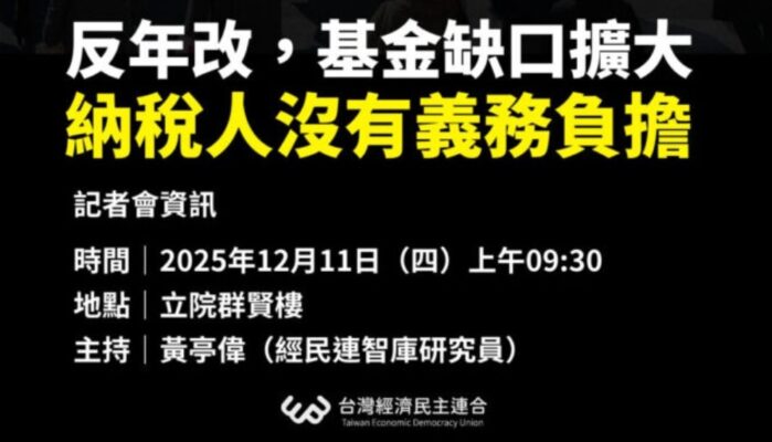 【反年改,擴大基金缺口,納稅人沒有撥補義務】2025.12.11上午經民連記者會採訪通知 台灣經濟民主連合 立........