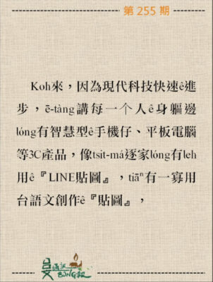《台文通訊BONG報》No.255〈Súi ê Kha-jiah〉 李江却台語文教基金會 作品:華語ê台語借詞........