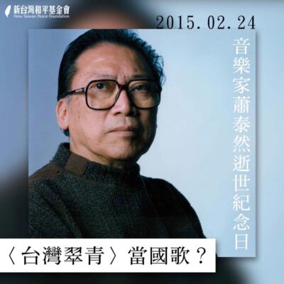歷史上的今天:音樂家蕭泰然逝世紀念日 新台灣和平基金會 你知道蕭泰然?他被譽為「台灣拉赫曼尼諾夫」,為什麼? ........
