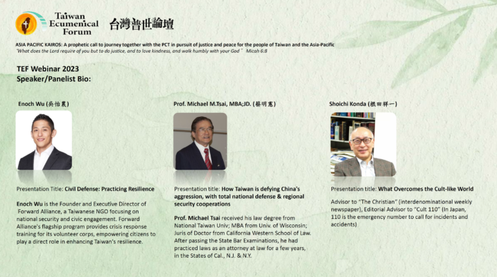 台灣普世論壇 TEF Zoom Webinar 2023 Date: 22 & 23 May, 202........