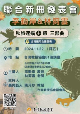 李勤岸、林剪雲聯合新冊發表會 台灣教授協會 李勤岸、林剪雲聯合新冊發表會日期:2024.11.22(週五)14........