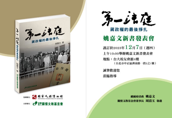 第一法庭-蔣政權的最後掙扎 姚嘉文新書發表會 第一法庭-蔣政權的最後掙扎 姚嘉文新書發表會 2023年12月7........