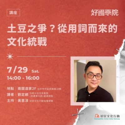 【活動推廣】2023/07/29【2023好國學院】土豆之爭?從用詞而來的文化統戰 好民文化行動協會 時間:7........