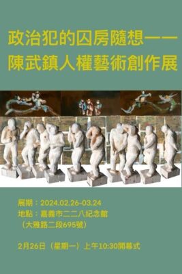 政治犯的囚房隨想——陳武鎮人權藝術創作展 這是今年度第一場 陳武鎮的人權藝術創作展 亦是首次佇嘉義的個展 政治........